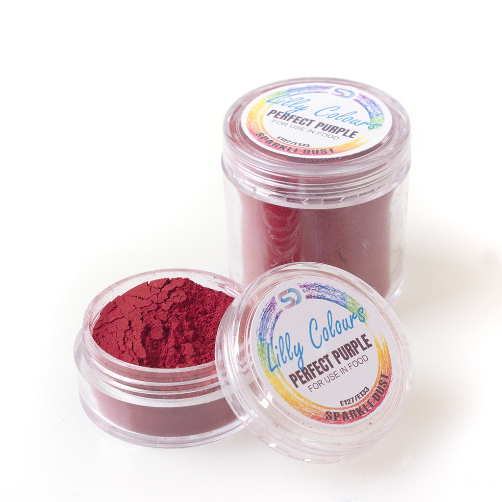 Worth every purple penny. Lilly Colours Perfect Purple is a concentrated, water-soluble food colouring powder that delivers the most sought-after, true purple you'll ever find — and trust us, we searched far and wide to find it. At its core a rich, vibrant Barney purple, this gem of a colour ranges from the softest, dreamiest lavender tones to a deep, dramatic bold purple, simply by adding more powder.