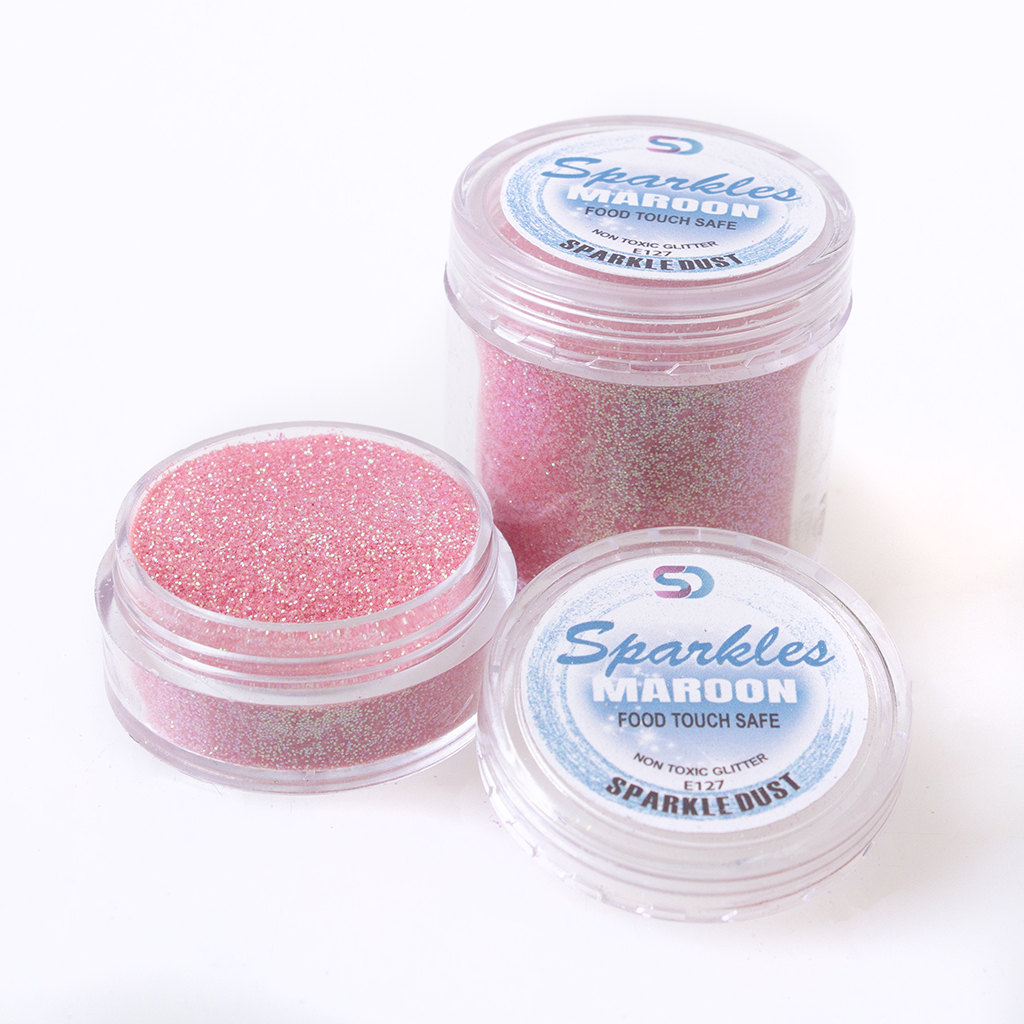 SPARKLES GLITTER RANGE is a great decorating tool with many applications. This range will give you a green, peach & gold effect depending on your viewing angle. The many base colours we have on offer enhance the final effect even more. We package these little diamonds in easy to use, sturdy, screw-top tubs which are suitable for shipping. Food touch safe.